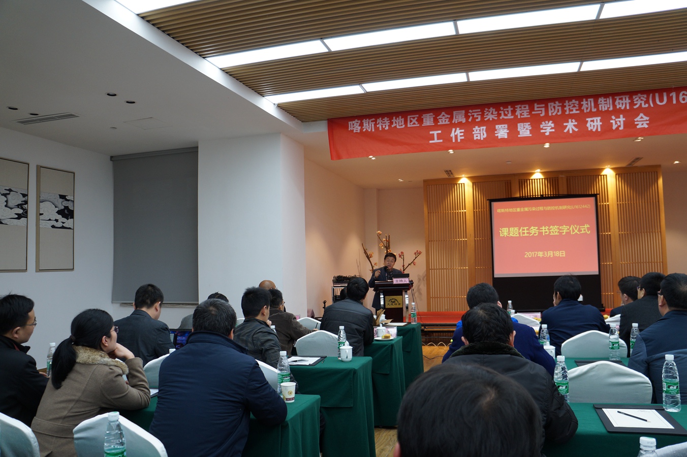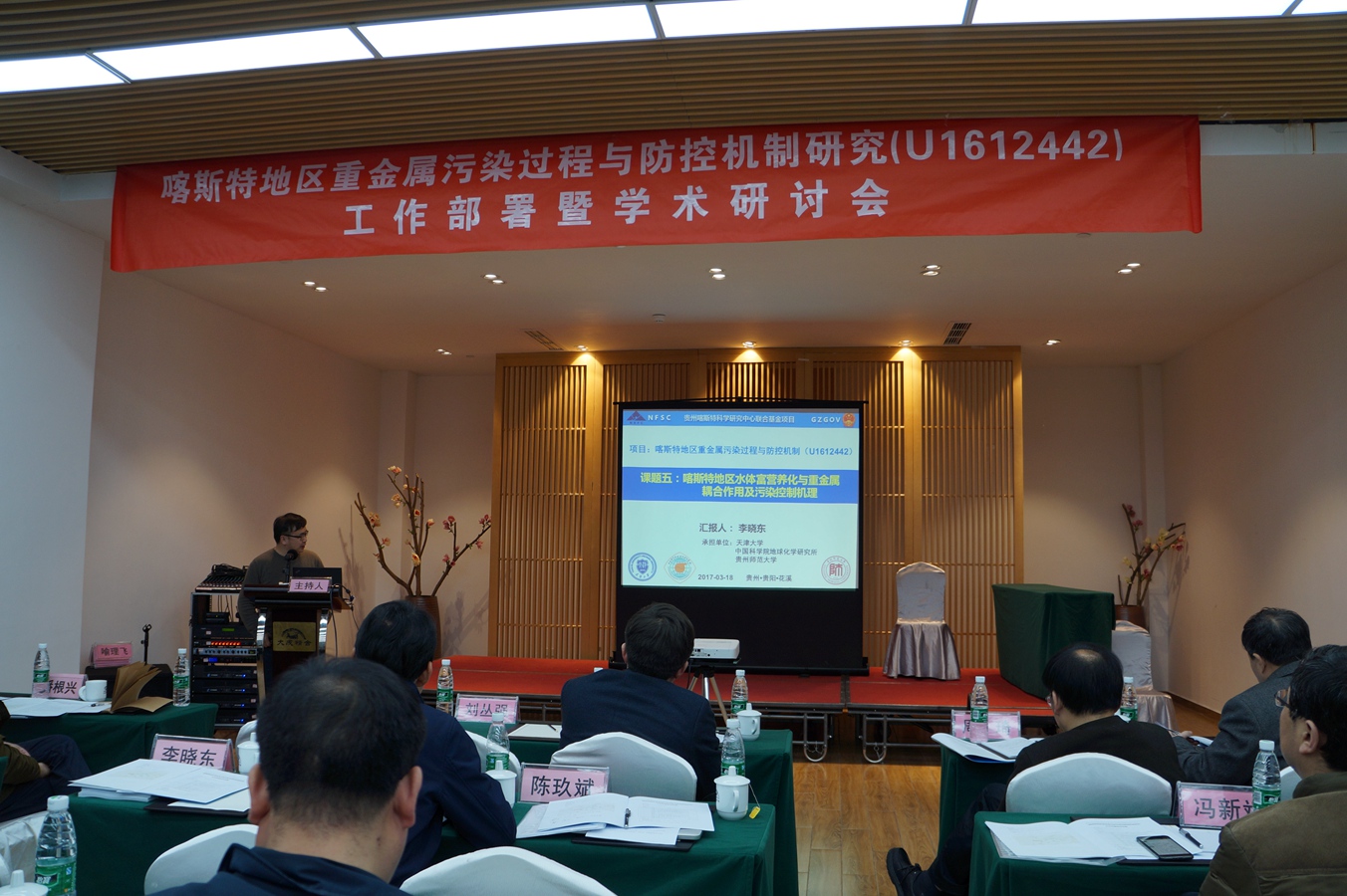 3月18日下午,我院吴攀教授主持的国家自然科学基金委员会(NSFC)-贵州省人民政府喀斯特科学研究中心项目“喀斯特地区重金属污染过程与防控机制研究”项目工作布置会在孔学堂顺利召开。国家自然科学基金委员会副主任、中国科学院院士刘丛强,喀斯特科学中心项目专家组河海大学陈喜教授、南京农业大学潘根兴教授、贵州省政协农村工作委员会刘作易研究员、贵州省地质矿产勘查开发局周琦研究员,中科院地化所所长胡瑞忠,校党委书记陈坚出席了会议。