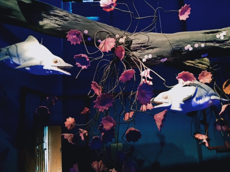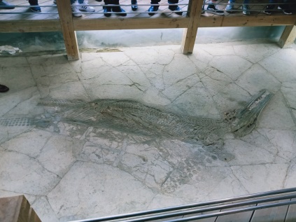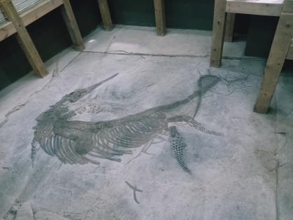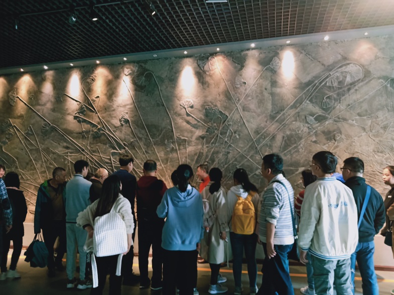 接下来,大家参观化石博物馆。博物馆内展出了许多精美的化石,如海龙类、海百合、菊石、龙胆等。