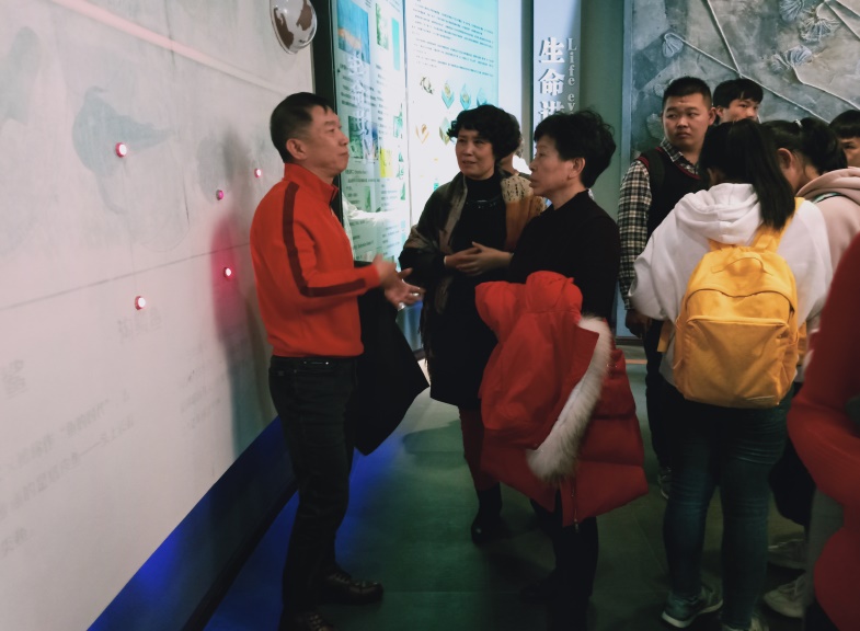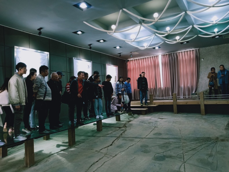接下来大家分别参观了原位保护馆1号、2号、3号,所谓原位保护馆是指在对地层进行挖掘时发现保存完好且大型的生物化石,在此基础上在其周围修建保护馆保护起来。同学们对这些生物化石产生极大兴趣,积极的向老师提出各种问题,老师们也知无不言言无不尽的解答同学们的问题,还为大家解说了鱼龙和海百合化石的形成。