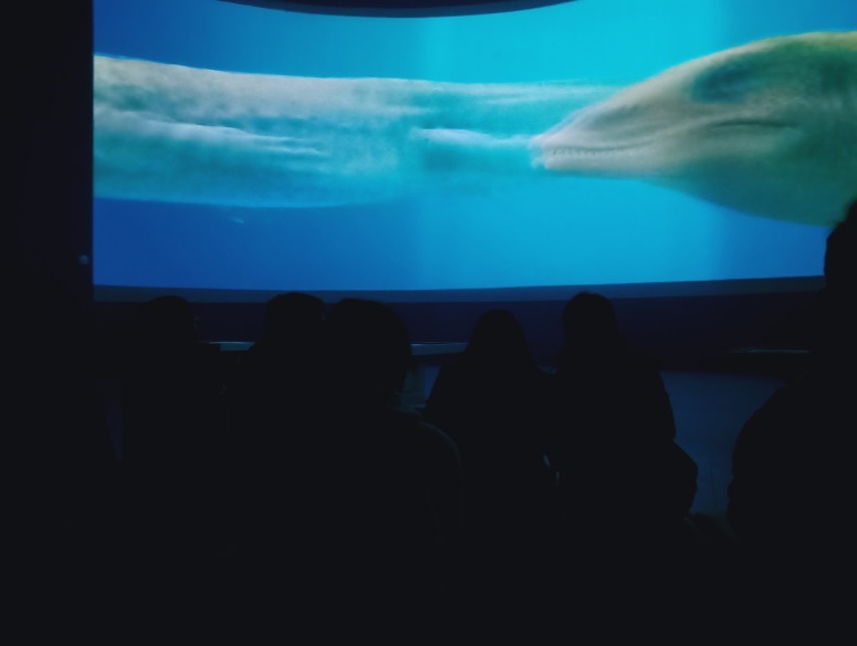 喻老师为同学们讲解鱼龙化石的组成以及鱼龙生存时期身体发生的变化