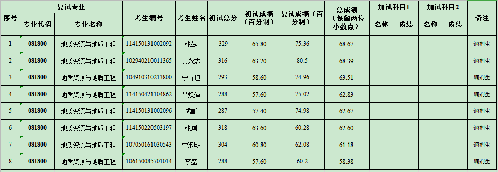 贵州大学2020年资源与环境工程学院硕士研究生复试结果公示(一)