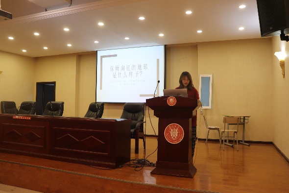 在主持人开场后,杨爱江老师把环保的重要性向我们娓娓道来,接着李彦澄老师向我们介绍了协会的由来,令人感慨协会成立学长学姐与老师们的辛苦付出;然后由费雪海老师和李江老师分别介绍了喀斯特野外观测站和资环学院的优秀老师们,向我们展示了协会生活之丰富。最后办公室部长和新生代表发言,更让我们对协会有了更多的认同感和归属感。