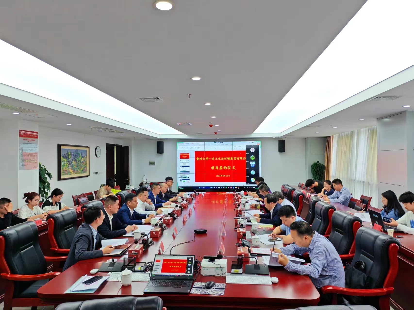 在与会嘉宾的共同见证下,我院教师李江教授与启立生态环境集团曹雪飞副总裁共同签署了《贵州大学-启立生态环境集团有限公司项目合作协议》。