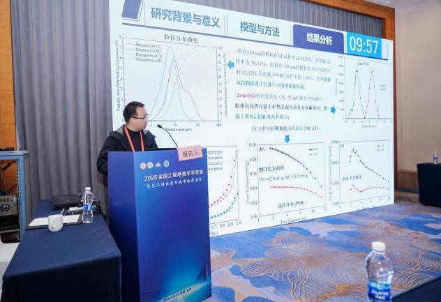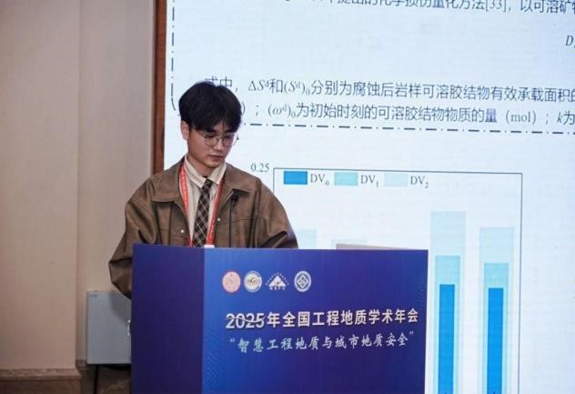 我院地质工程教研室老师史文兵、江兴元、吴道勇、李麟玮、王小明、李慧等6名老师、博硕研究生16名,本科生1名参加了此次会议。江兴元副教授在分会场做了题为“开采扰动与降雨耦合作用下矿山崩滑灾害形成机理与失稳评价方法”的口头报告。吴道勇副教授在分会场作了题为“胶体氧化物对红粘土物理力学性能的调控机制”的口头报告。王小明老师在分会场作了题为“基于物理机制启发的区域土体稀疏抗剪强度智能预测研究”的口头报告。有13名硕博研究生在研究生分会场作口头报告。此次学院的报告包含了工程地质的宏观和微观方面的研究,充分展示了贵州大学工程地质领域的研究。