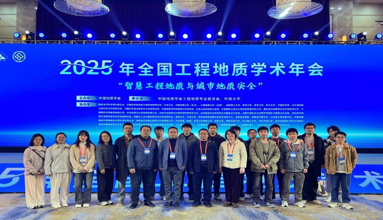2025年11月21日至24日,2025全国工程地质学术年会在湖南长沙盛大召开,该会议由中国地质学会主办,中国地质学会工程地质专业委员会与中南大学共同承办。中国科学院彭建兵院士、方小敏院士、崔鹏院士等嘉宾代表1800余人出席了会议,线上参会人数超过164万人次。我院共有20余名师生参加了此次会议。